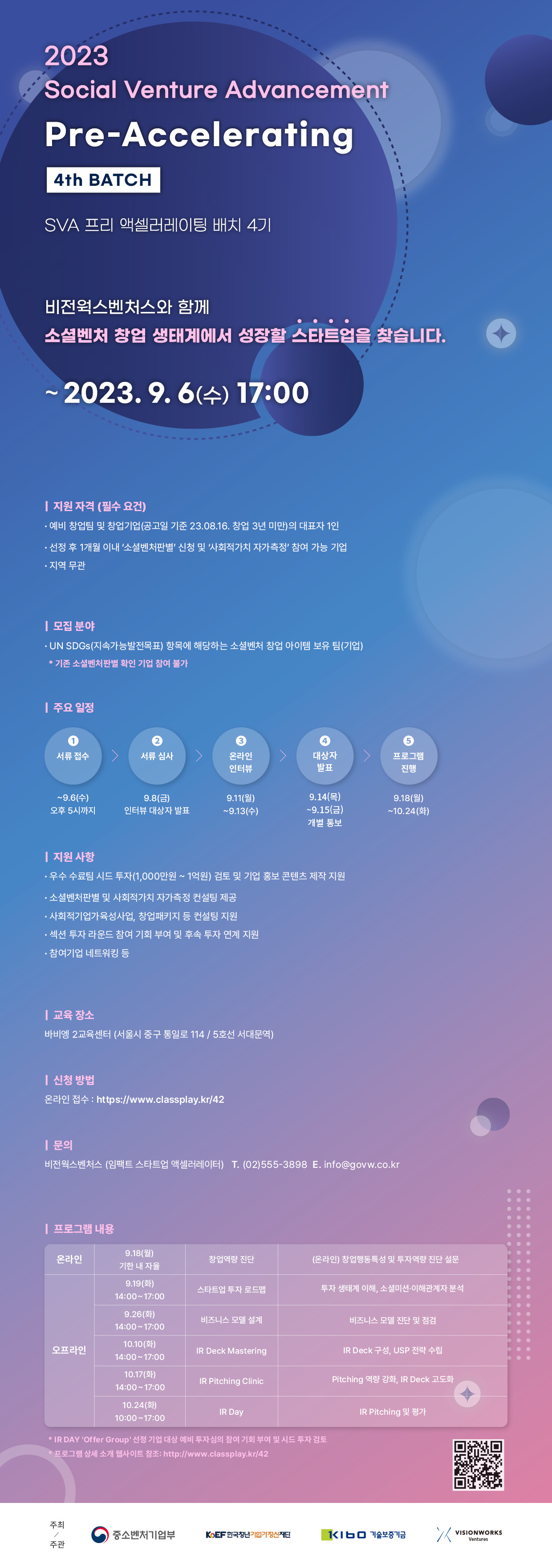 비전웍스벤처스(임팩트 스타트업 액셀러레이터) / (02) 555-3898 / info@govw.co.kr
