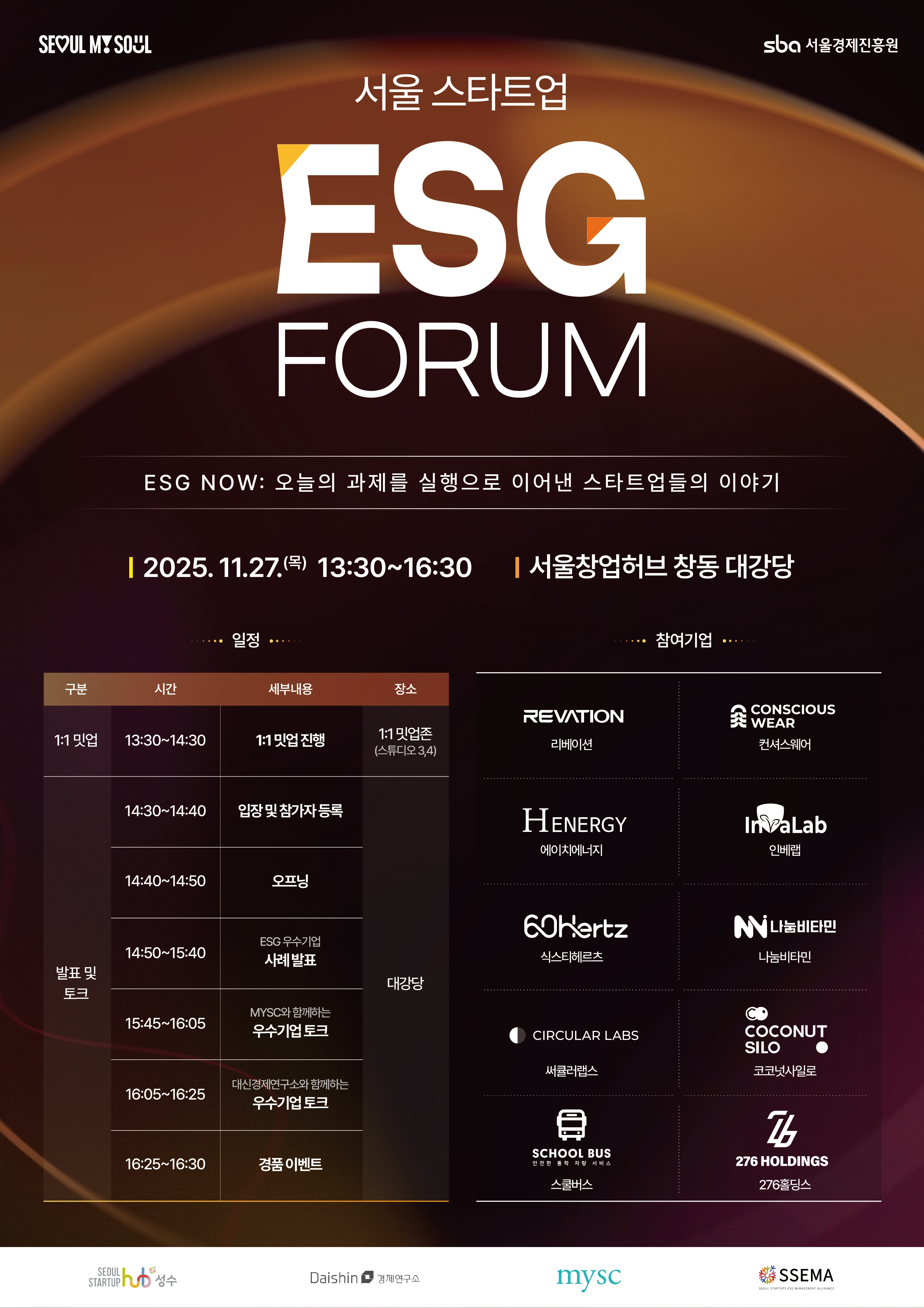 어느덧 3년째 이어지는 「2025 서울 스타트업 ESG 포럼」 개최 소식을 전해드립니다!